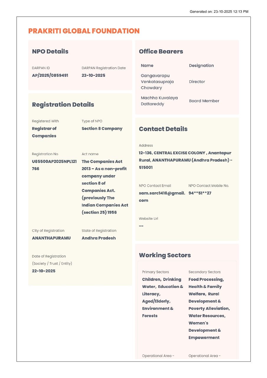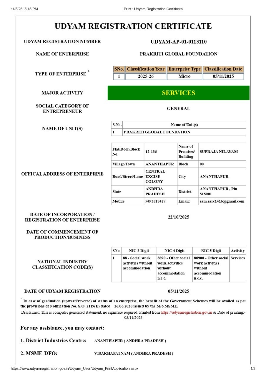 Prakriti Global Foundation is a humanitarian, environmental, and community-service organisation dedicated to creating a healthier, happier, and sustainable society. Rooted in compassion and guided by the principles of service, PGF works across rural development, healthcare support, environmental protection, women empowerment, youth leadership, sports development, and spiritual well-being.